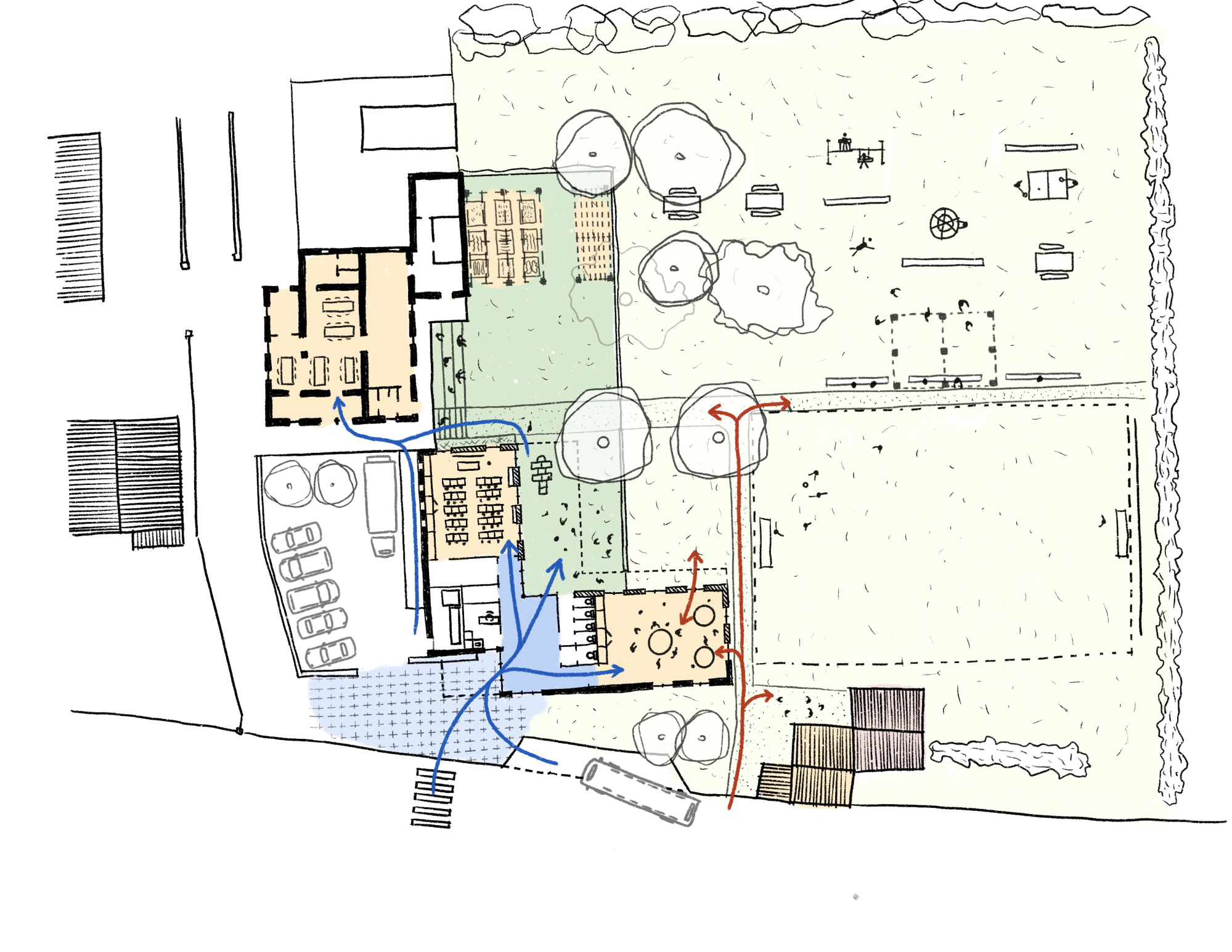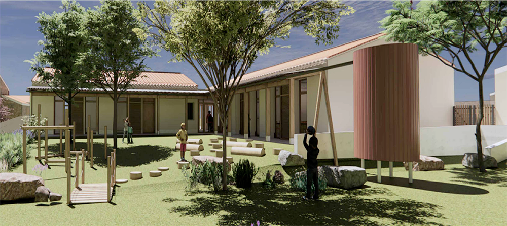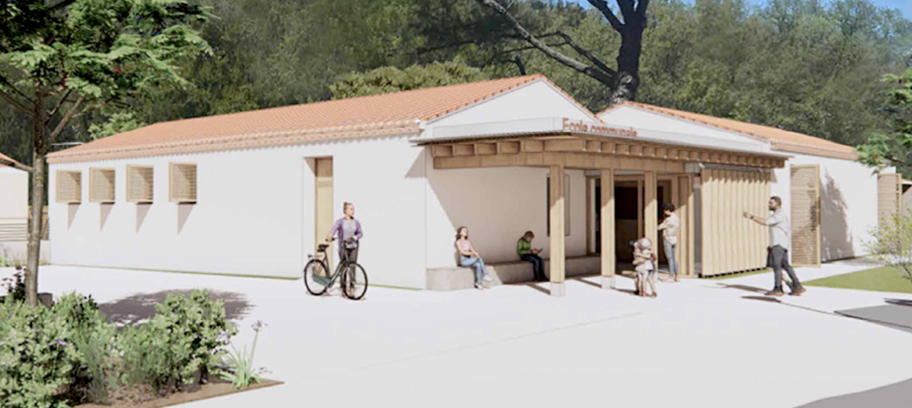 Le projet inclut également l’aménagement complet de la cour d’école afin de proposer un espace extérieur qualitatif, structuré et sécurisé, favorisant les temps de vie et d’apprentissage en plein air.